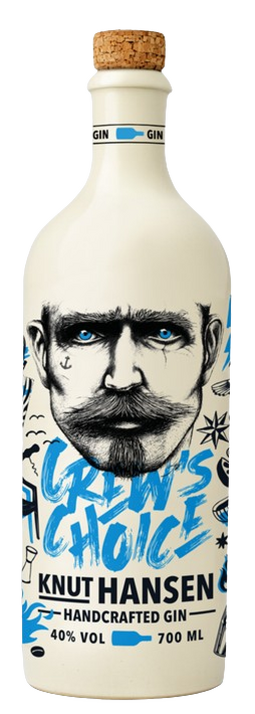 „Erweiterung der Knut Hansen Range durch ein neues Crew-Mitglied. Ein klarer, authentischer, nordischer Gin für Longdrinks & Cocktails. Von Crew zu Crew – eine Hommage an echten Teamgeist mit einem Gin, der verbindet. Ein tiefblaues Liquid wie der ikonische Blick von Knut Hansen. 700 ml voller Charakter in einer Glasflasche – mit ehrlichen 40 % Vol. für die Crew.“